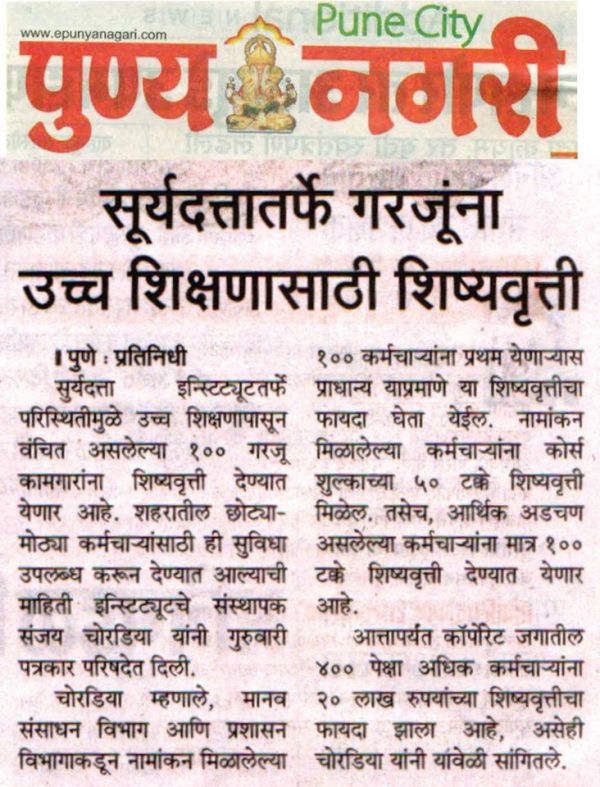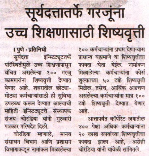 Suryadatta Offer's 100 Scholarships Worth Rs 30 Lakhs