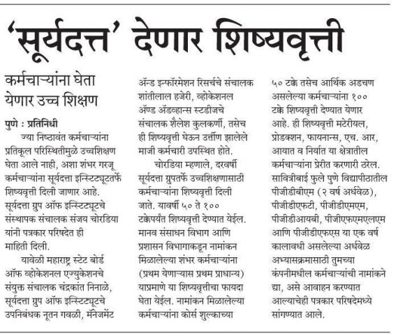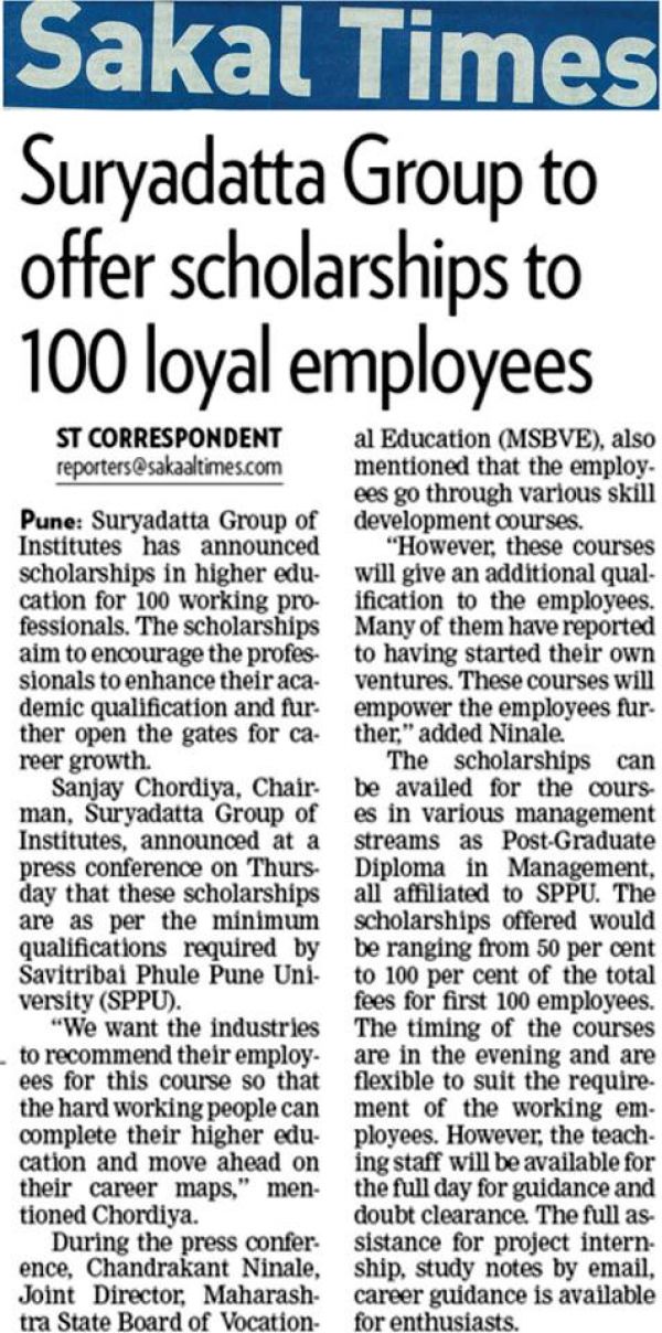 Suryadatta Education Foundation Announces Scholarship to 100 Working Professionals For Higher Education Click here to View Details...