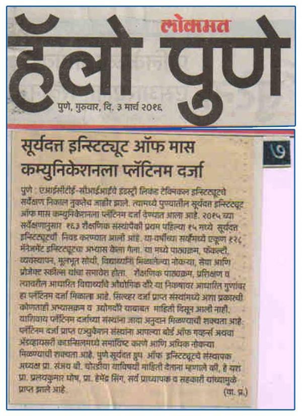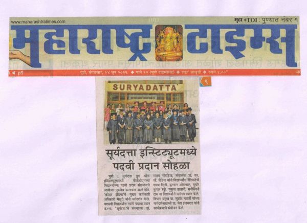 Suryadatta Group of Institutes launched 'Mission Corona Eradication' to fight against COVID-19 under Suryadatta Health Bank Initiative Click here to View Details...