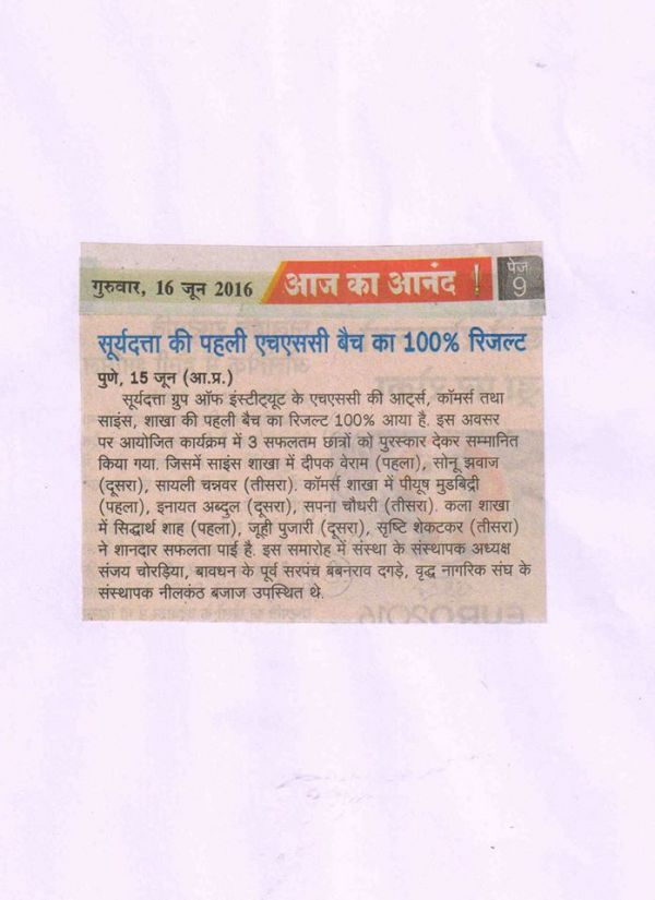 100% Result of 10th and 12th Standard of Suryadatta Public School and Junior College Click here to View Details...