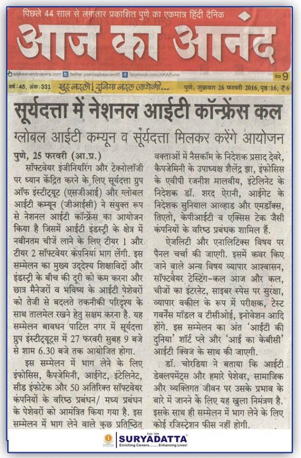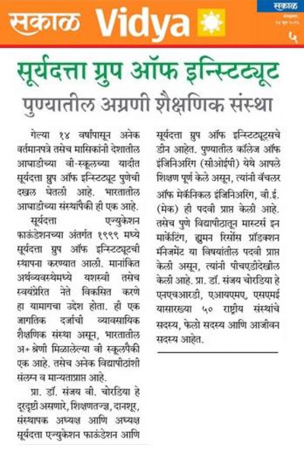 Suryadatta Group of Institutes, offering various UG/PG courses like BBA BBA IB, MBA, B Sc Animation, B Sc Hospitality Studies, M Sc Hotel Management, B Sc Home Science, B Sc Fashion Design, BA, B Com, M Com, B Sc Cyber & Digital Science, BBA CA MCA, B Sc CS and M Sc CS.
