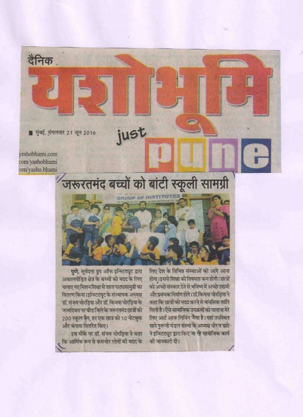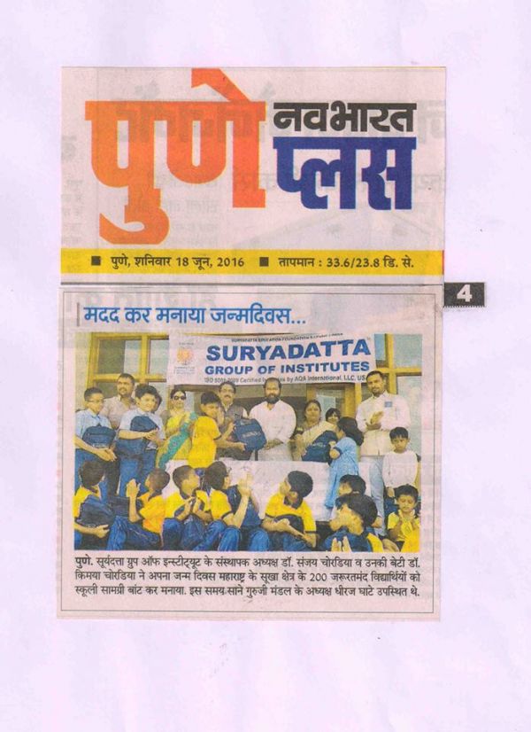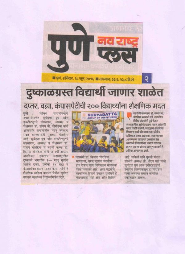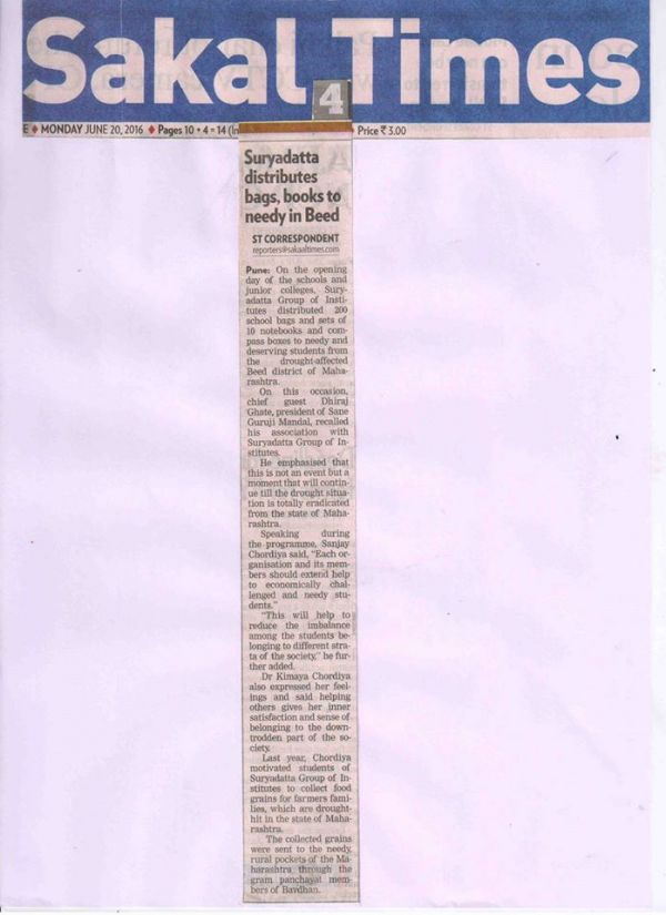 Suryadatta Education Foundation Sets up Resource and Asset Bank for Food,Clothing and Education for Needy and Deserving Click here to View Details...