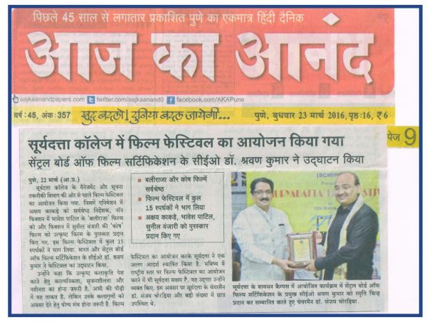 Suryadatta's Student "Aditya Giri" Produced a Movie Fellicited by Professor.Dr.Sanjay Chordiya